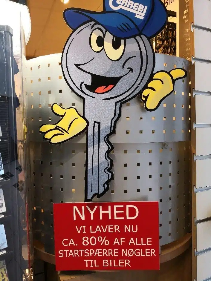 Vores nøgleservice omfatter kopiering af nøgler til forskellige typer låse. Medbring venligst original nølge. Vi kan hjælpe med bilnøgler, husnøgler, skabsnøgler, Cykelnøgler, knallertnøgler, motorcyklenøgler og postkassenøgler. Vores erfarne medarbejdere sikrer, at nøglerne kopieres præcist og pålideligt.